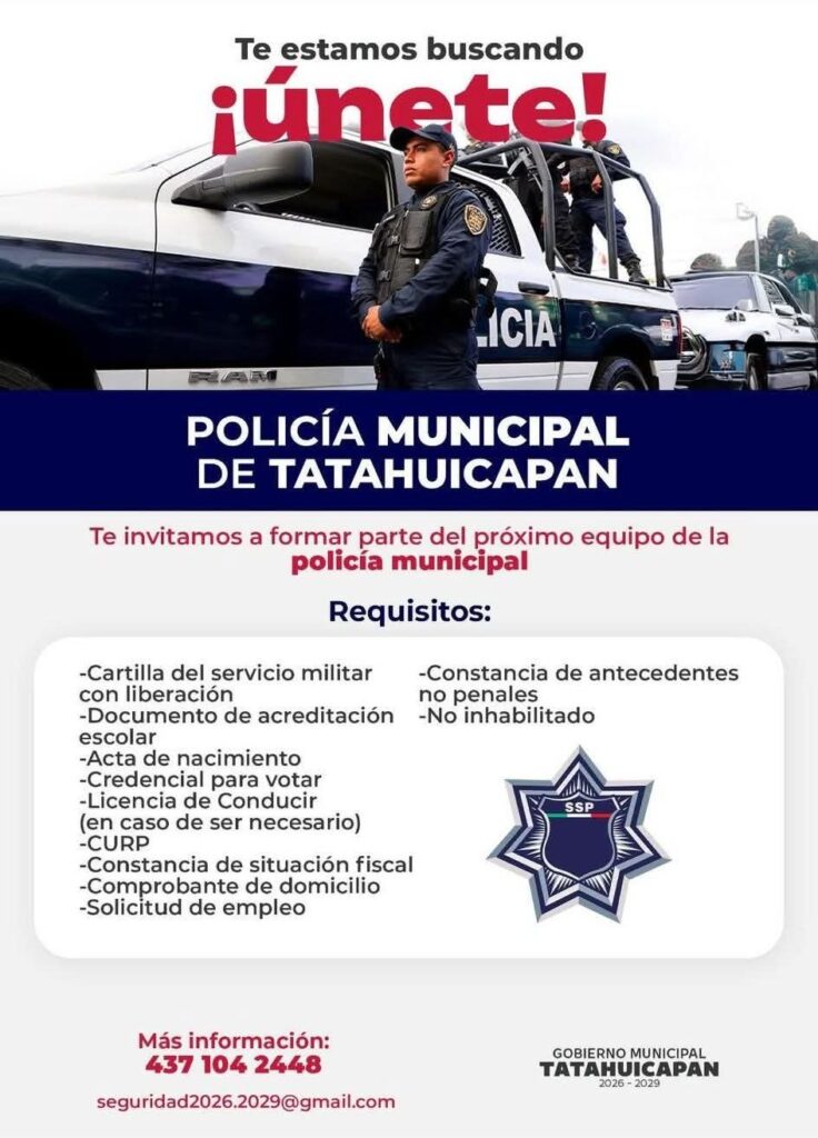 “Vamos a tomar acciones firmes contra todo aquel que atente contra la paz y la tranquilidad de los Tatahuicapeños. ¡Ven y forma parte de la nueva policía!”, expresó el edil electo al dar a conocer la invitación.