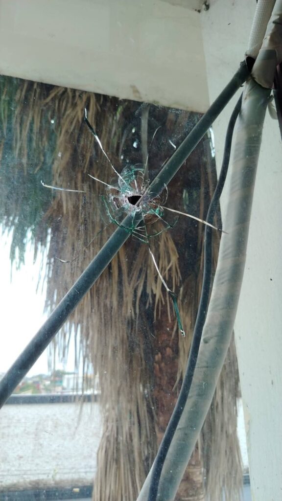 Así mismo relató, afuera de la fiscalía regional, una vez que concluyó su declaración pues denunció el hecho ante las autoridades competentes, que el viernes de la semana pasada otro de los cristales de la ventana presentaba también el vidrio estrellado, pero no le dió importancia, sin embargo, hoy ya encontraron en el piso una ojiva por lo que decidió poner su denuncia al tiempo de declarar que tiene miedo y teme por su integridad física.