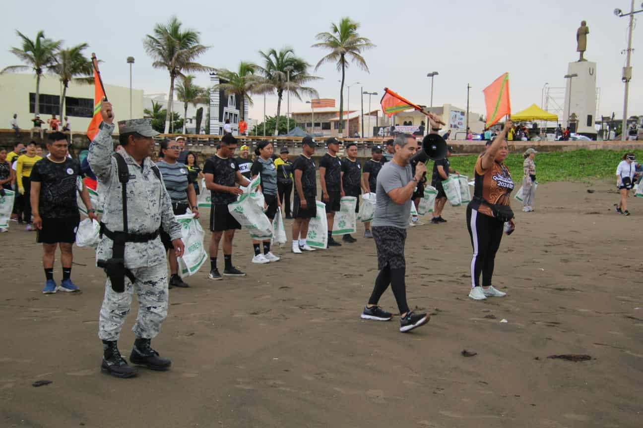 Coatzacoalcos, Ver.- Esta mañana en el marco del Día Mundial de las Playas, el Observatorio Ciudadano impulsó una jornada de limpieza en coordinación con la Guardia Nacional, la Marina, grupos de deportistas, asociaciones civiles, cámaras empresariales, empresas y ciudadanos comprometidos con el medio ambiente.