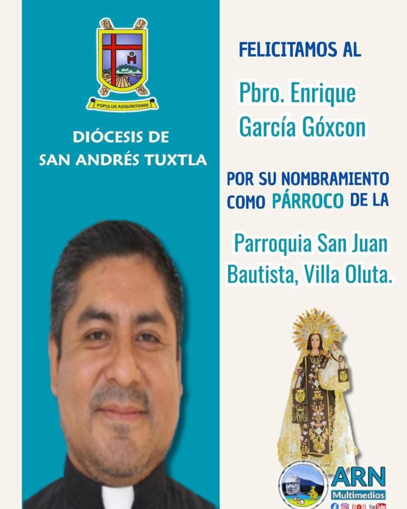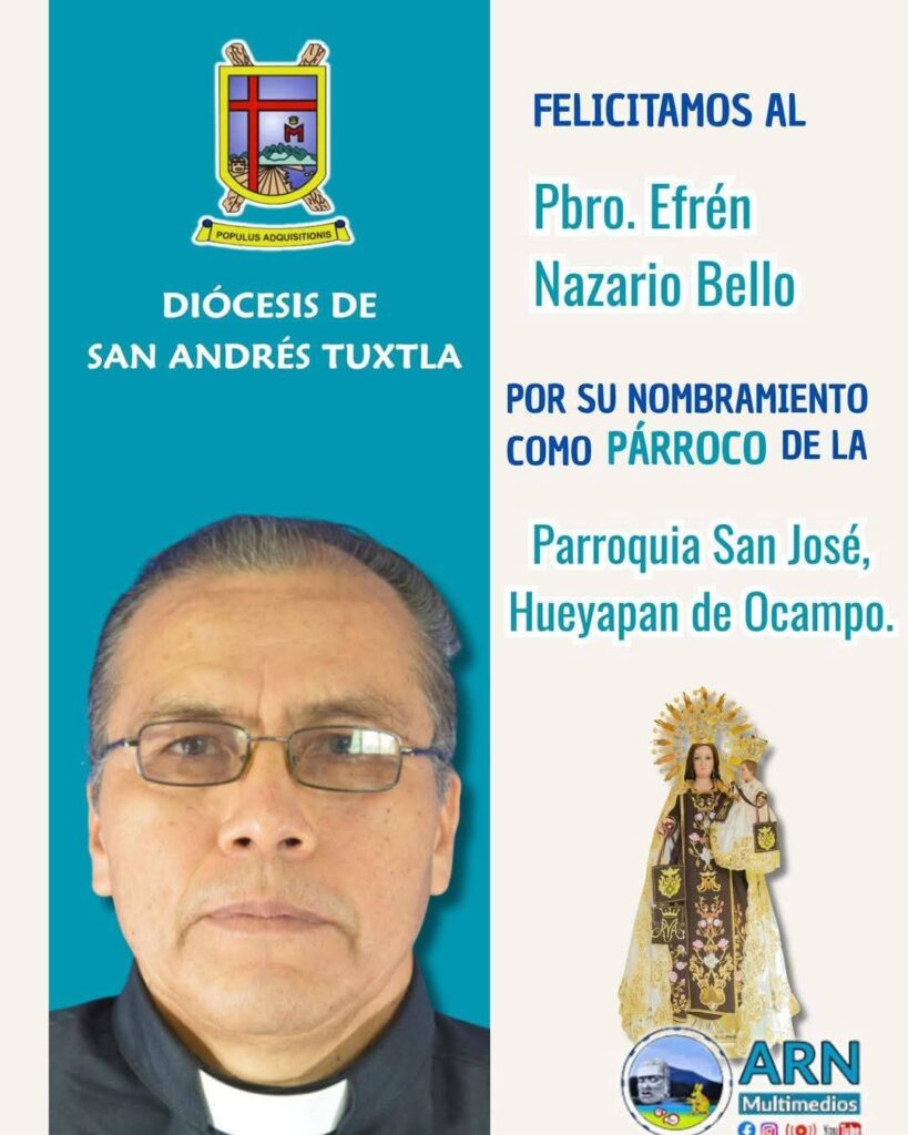 San Andrés Tuxtla, Ver. – La Diócesis de San Andrés Tuxtla informó sobre una serie de movimientos en distintas parroquias de la región sur de Veracruz, entre ellas las ubicadas en los municipios de Oluta, Acayucan, Hueyapan de Ocampo, Jesús Carranza y Jáltipan de Morelos.