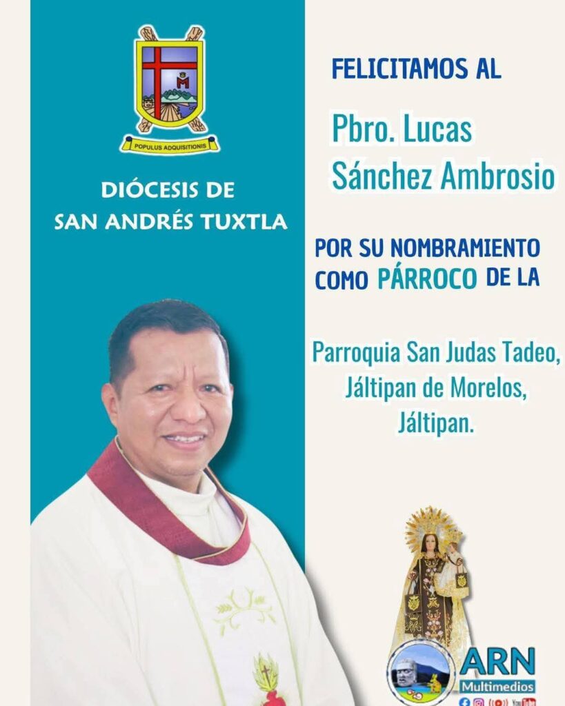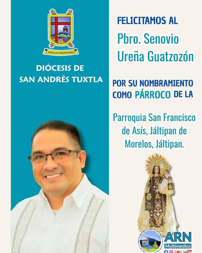 En el caso de Jáltipan, se confirmó que el presbítero Senovio Ureña Guatzozón asumirá como nuevo párroco de la iglesia San Francisco de Asís, siendo recibido el próximo 6 de octubre a las 11 de la mañana en una ceremonia especial organizada por la comunidad parroquial.